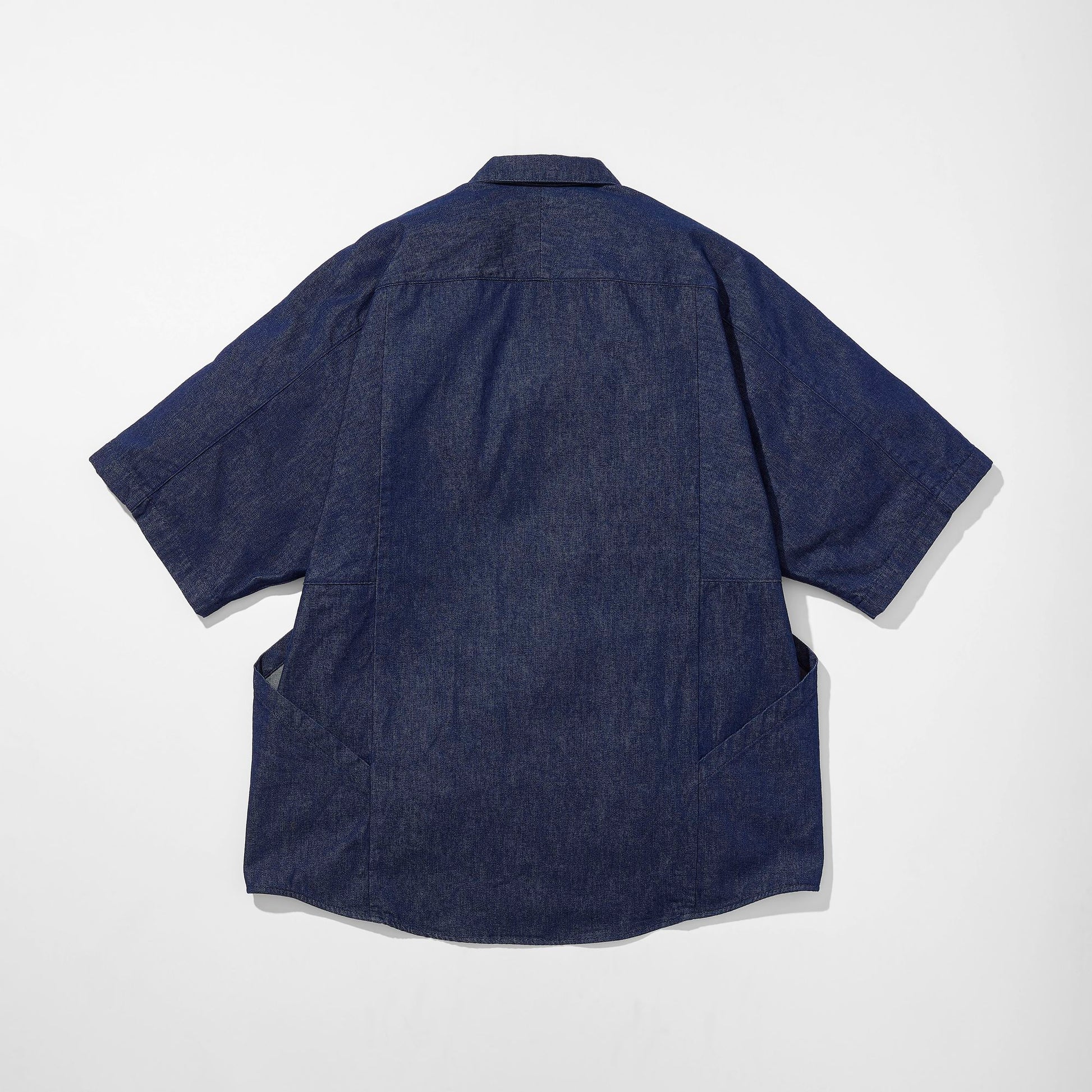 和服の平面的なパターンからインスピレーションを受けた、凧を彷彿させるシャツ。特徴的な切り替えを利用したアウトポケットがデザイン性のみならず実用性も向上。