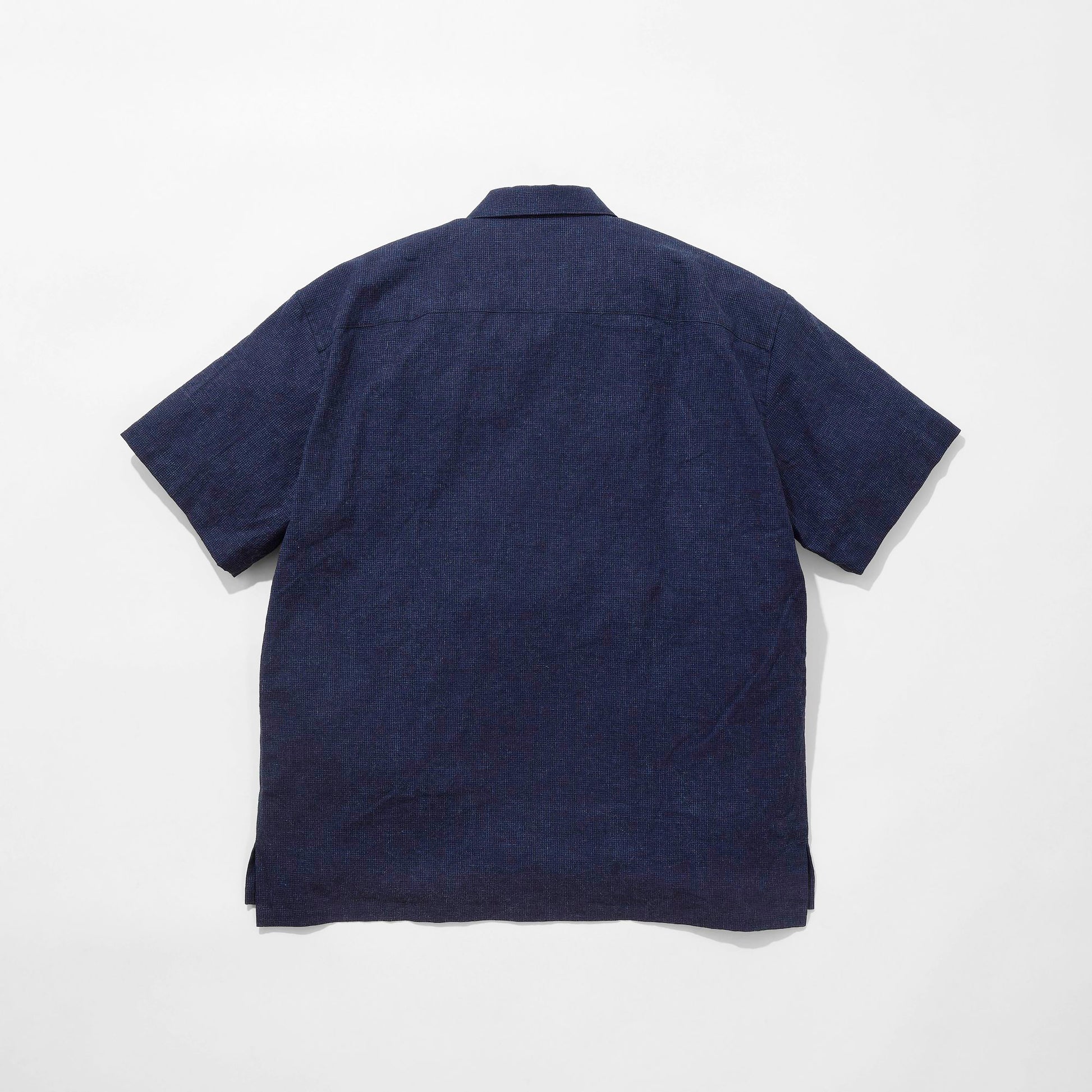 Indigo Dyed Cotton/Linen Camp Collar Shirt